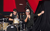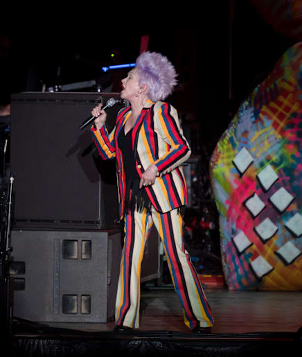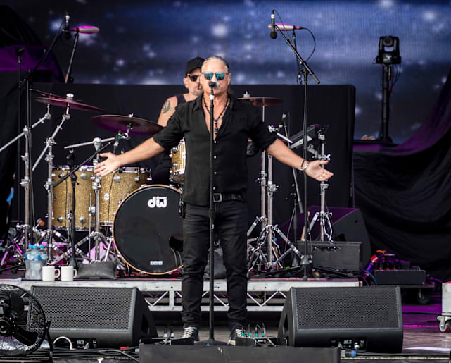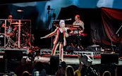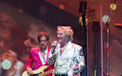 The anticipation for Sir Rod's performance was high as an enthusiastic crowd stayed pumped up by the resident DJ. The sounds of Scottish bagpipes sounded throughout the green and Sir Rod arrived on the stage wearing a glittery ensemble, skin-tight pants and the most impressive sparkling sneakers one could imagine and burst straight into Robert Palmers ‘Addicted to Love’, he was flanked by ladies on guitars which kept with the theme of the film clip of the song. He had his signature spiked hair and cheeky smile as he danced and shook his body like a gyrating Elvis of an era gone by. Onto ‘You Wear It Well’ followed by his address to the crowd to let us know we were in for a ride “We are going to be here for 2 hours, 24 songs” with a wink of his eye and a dip of his head.